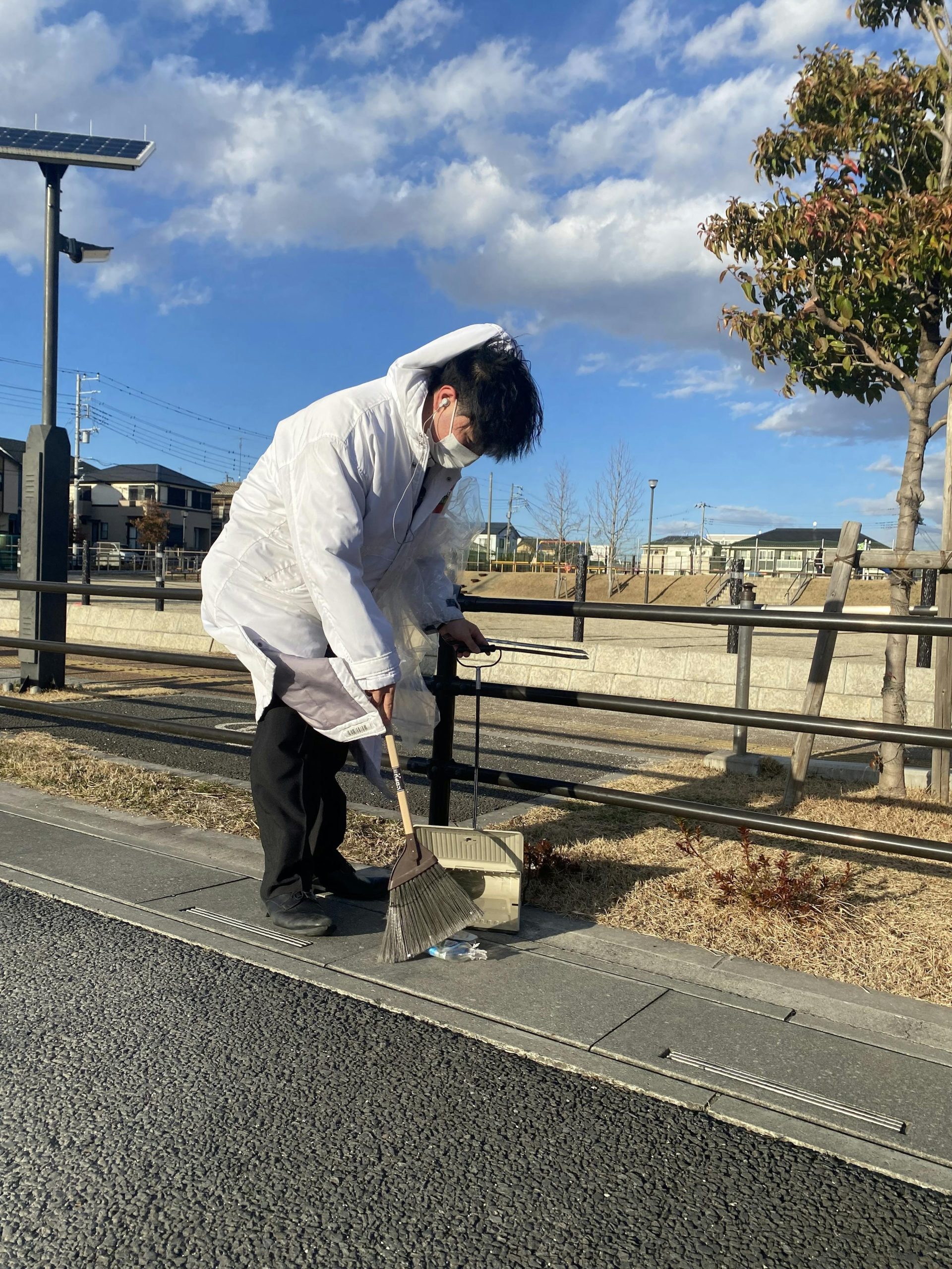 近隣の公園前の道を清掃しました。