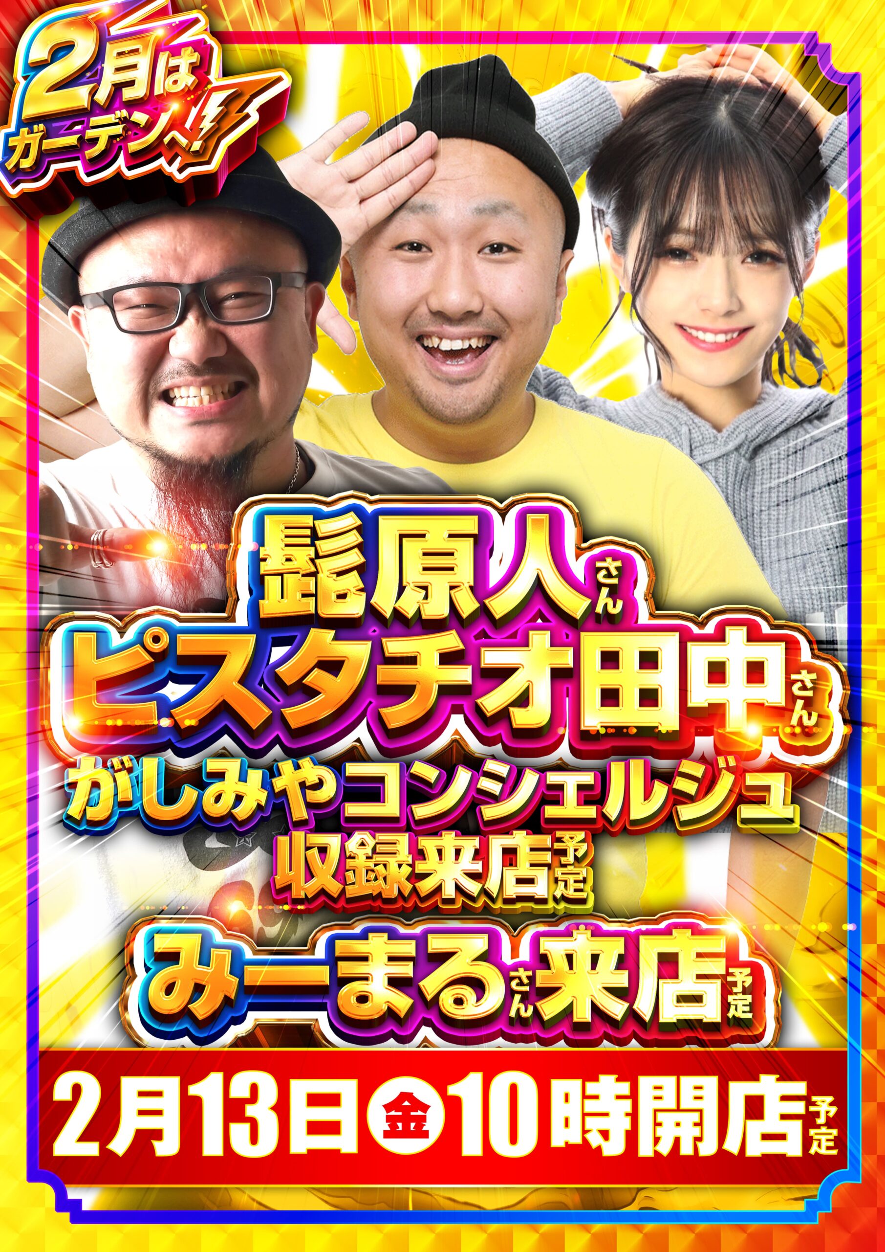 【ガーデン東大宮】2月13日(金) がしコン収録 髭原人さん&ピスタチオ田中さん同時来店 みーまるさんも来店