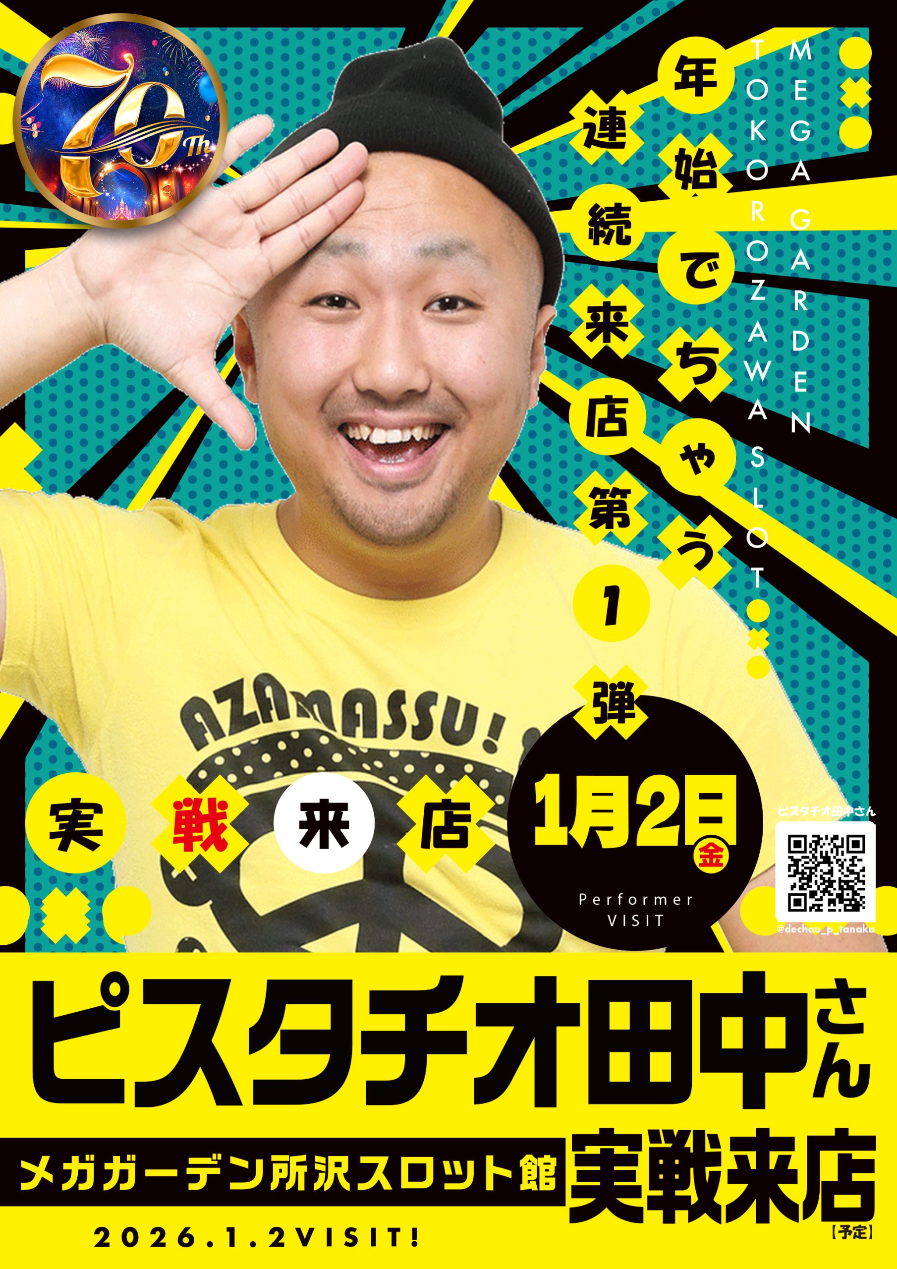 2026-01-02 【メガガーデン所沢スロット館】1/2(金)ピスタチオ田中さん来店! 【メガガーデン所沢スロット館】1/2(金)ピスタチオ田中さん来店! 2026年 1月 2日 【メガガーデン所沢スロット館】1/2(金)ピスタチオ田中さん来店!