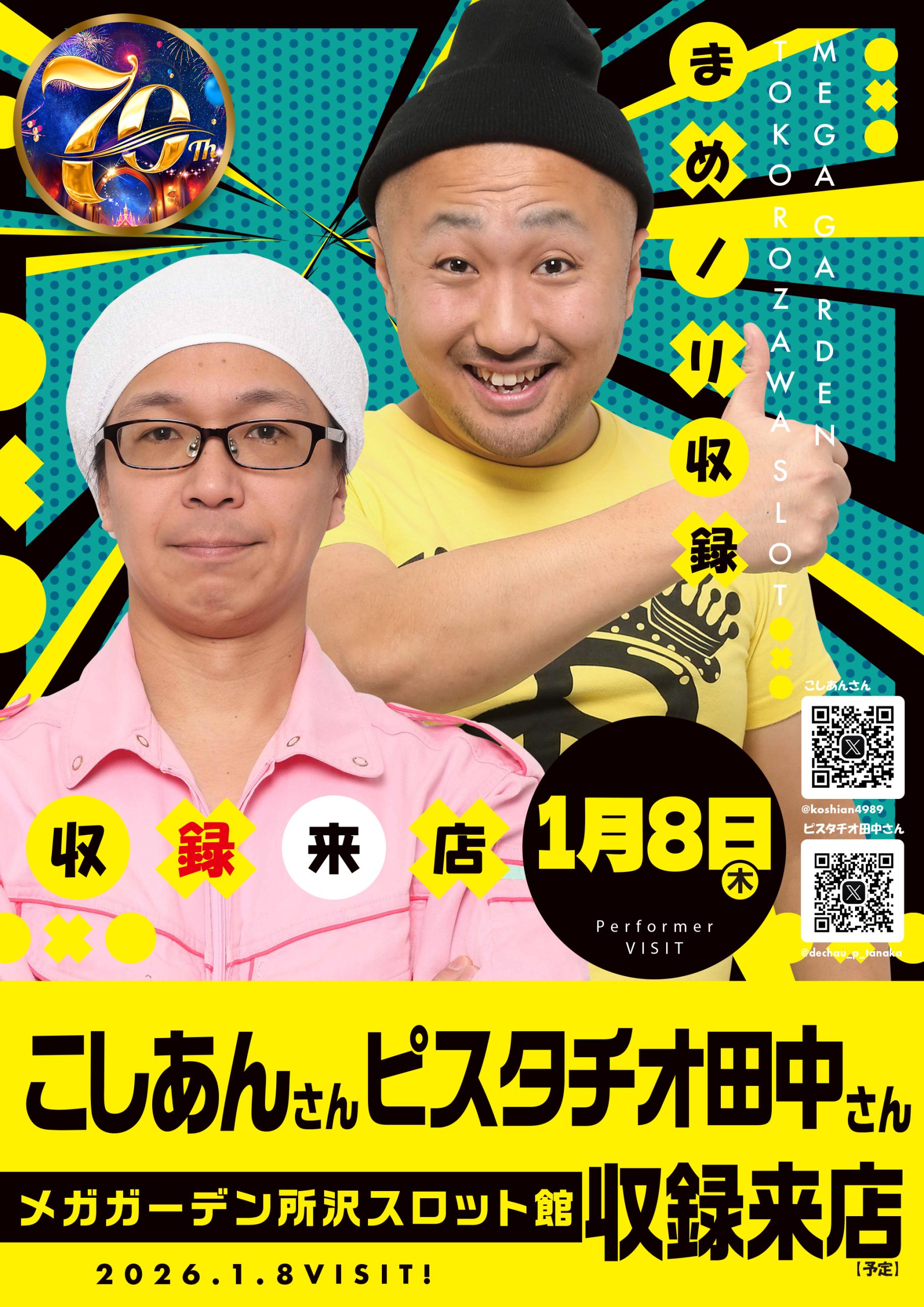 2026-01-08 【メガガーデン所沢スロット館】令和8年1/8(木)まめノリ収録!こしあんさん・ピスタチオ田中さん来店! 【メガガーデン所沢スロット館】令和8年1/8(木)まめノリ収録!こしあんさん・ピスタチオ田中さん来店! 2026年 1月 8日 【メガガーデン所沢スロット館】令和8年1/8(木)まめノリ収録!こしあんさん・ピスタチオ田中さん来店!