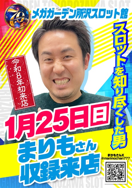 2026-01-25 【メガガーデン所沢スロット館】令和8年1/25(日)まりもさん収録来店予定 【メガガーデン所沢スロット館】令和8年1/25(日)まりもさん収録来店予定 2026年 1月 25日 【メガガーデン所沢スロット館】令和8年1/25(日)まりもさん収録来店予定