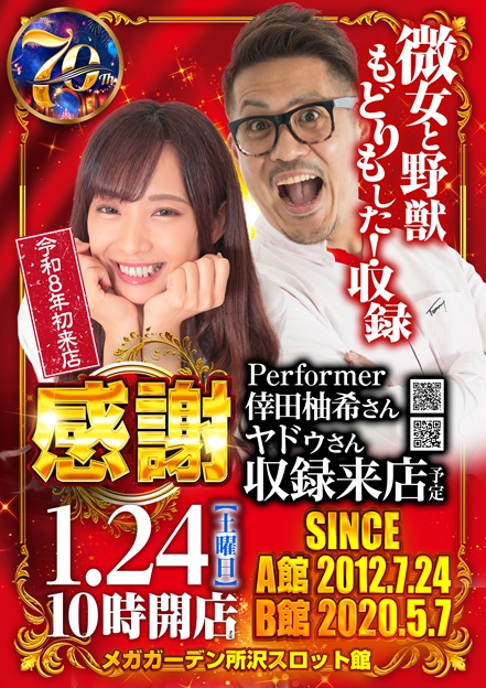 2026-01-24 【メガガーデン所沢スロット館】令和8年1/24(土)微女と野獣 もどりもした!倖田柚希さんヤドゥさん・熊猫ガールおすしさんトリプル来店予定 【メガガーデン所沢スロット館】令和8年1/24(土)微女と野獣 もどりもした!倖田柚希さんヤドゥさん・熊猫ガールおすしさんトリプル来店予定 2026年 1月 24日 【メガガーデン所沢スロット館】令和8年1/24(土)微女と野獣 もどりもした!倖田柚希さんヤドゥさん・熊猫ガールおすしさんトリプル来店予定